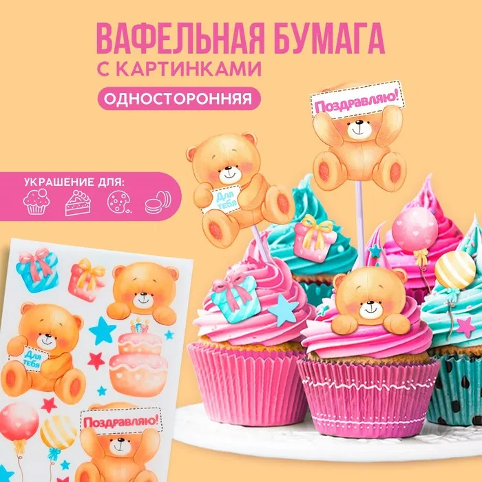 Вафельные картинки съедобные «Мишки» для капкейков, торта KONFINETTA, 1 лист А5 — Характеристики