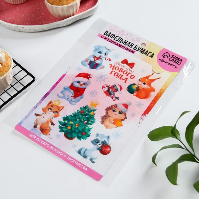 Вафельные картинки съедобные «Веселого нового года», для декора тортов и капкейков, 1 лист — Характеристики