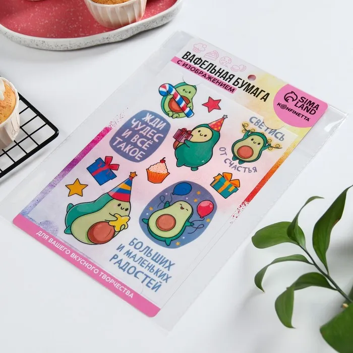 Вафельные картинки съедобные «Жди чудес» для капкейков, торта KONFINETTA, 1 лист А5 — Характеристики