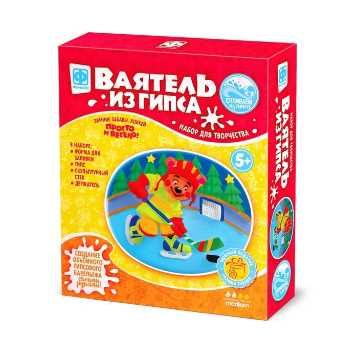 Ваятель панно для раскрашивания «Зимние забавы. Хоккей» поможет малышу создать своими руками необычный сувенир! Смешайте специальную смесь с водой и вылейте её в формочку, а после того, как она застынет, раскрасьте её любыми красками.