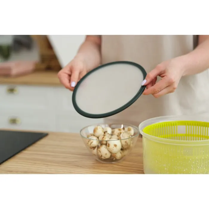 Универсальная многоразовая крышка из полипропилена повышенной прочности герметично закрывают посуду и контейнеры, не пропуская воздух и запахи, надолго сохраняя свежесть продуктов, предотвращает попадание внутрь влаги, пыли или личинок моли и жучков.