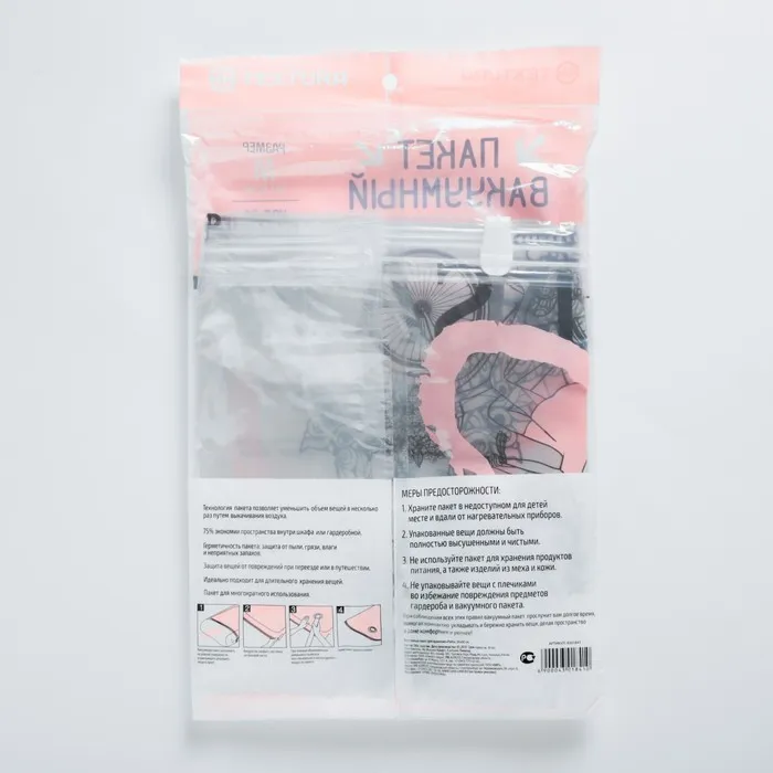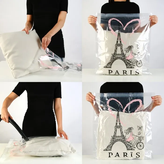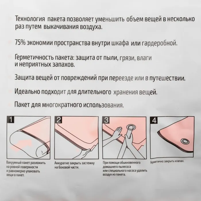 Объём хранимых вещей уменьшается в 4 раза! Вы значительно экономите драгоценное пространство, а также время на упаковку.