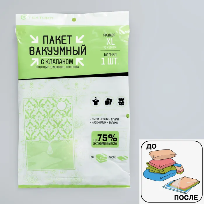 Объём хранимых вещей уменьшается в 4 раза! Вы значительно экономите драгоценное пространство, а также время на упаковку.