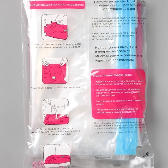 - Не храните в таких пакетах еду, кожаные и меховые изделия.