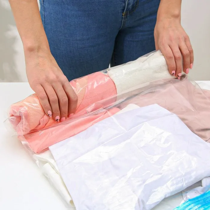 Упаковочные вакуумные пакеты отлично подходят для хранения вещей таким образом, чтобы они не занимали слишком много места. В действительности, пространство, занимаемое упакованной в такой пакет одеждой, уменьшается вплоть до 50-80%.