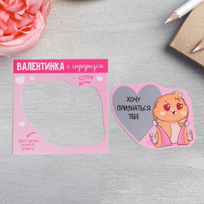 Валентинка со скретч слоем «Хочу признаться тебе», зая, 10 х 10см — Характеристики