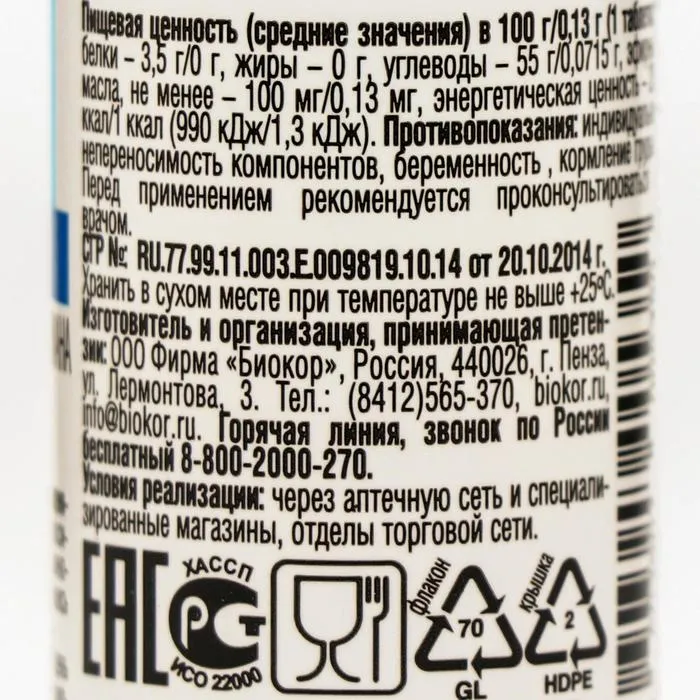 Способ употребления: внутрь взрослым по 1-2 таблетки 3 раза в день во время еды в качестве биологически активной добавки к пище, содержащей эфирные масла.