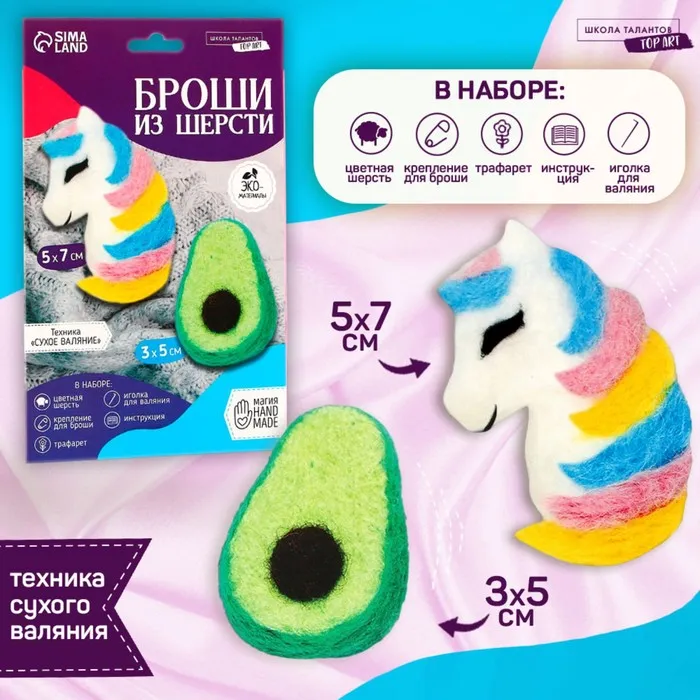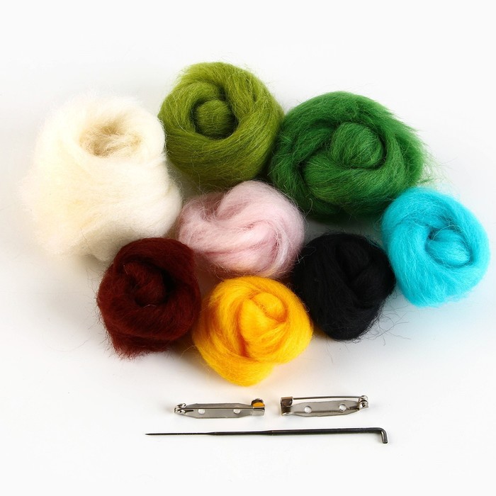В этом наборе собрано всё самое необходимое для создания броши своими руками в технике сухого валяния. Теперь даже начинающий любитель фелтинга быстро создаст красивый аксессуар.