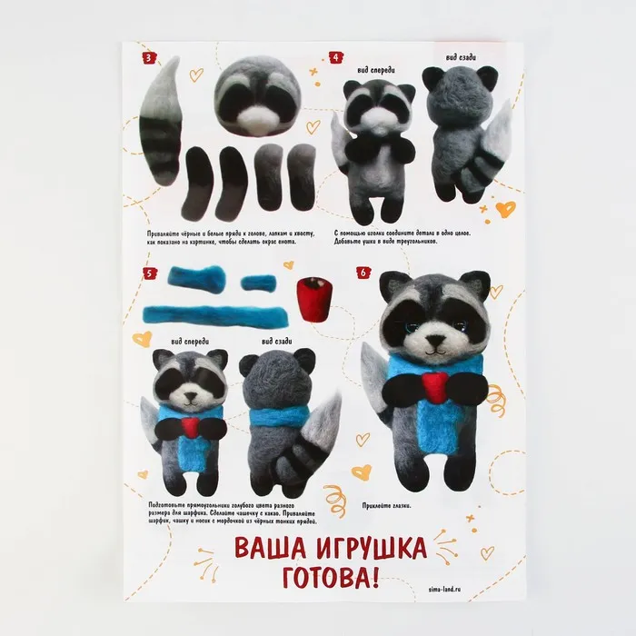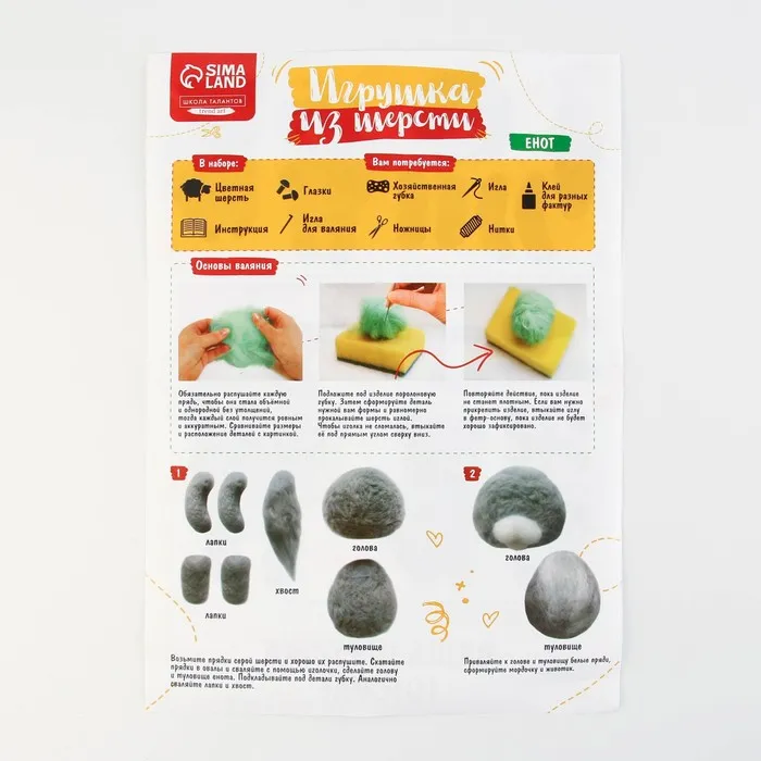 Валяние из шерсти. Игрушка «‎Енотик»‎, набор для творчества — Характеристики