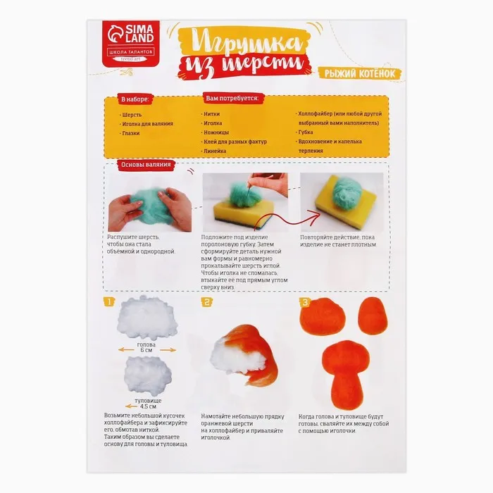 Если вы никогда не работали в технике сухого валяния - не проблема! Натуральная, очень мягкая и податливая шерсть и подробный мастер-класс помогут создать неповторимый шедевр даже новичкам.