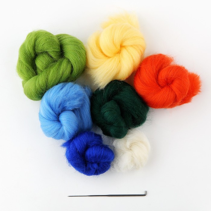 Лоскуты цветной шерсти, специальную иглу и лист фетра, который будет служить холстом для вашей картины.