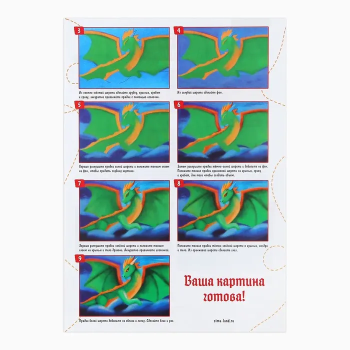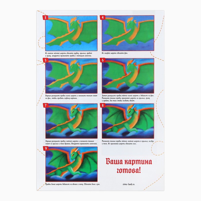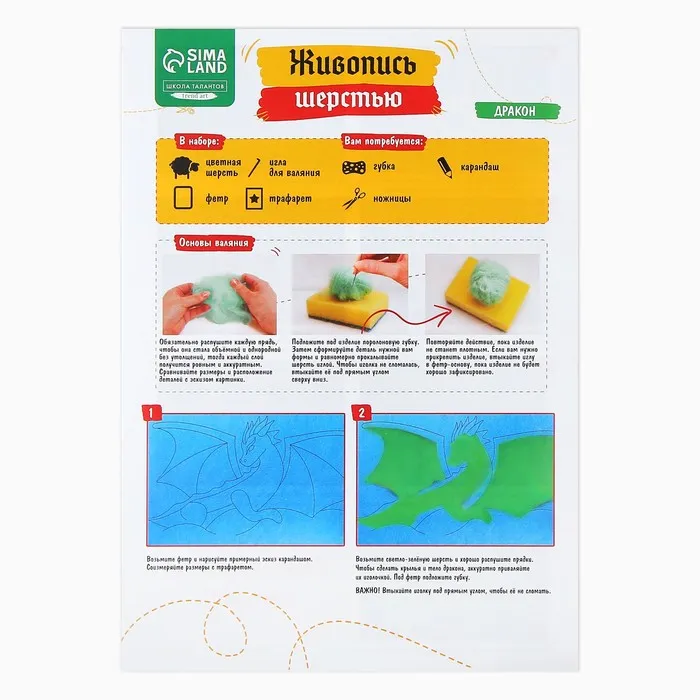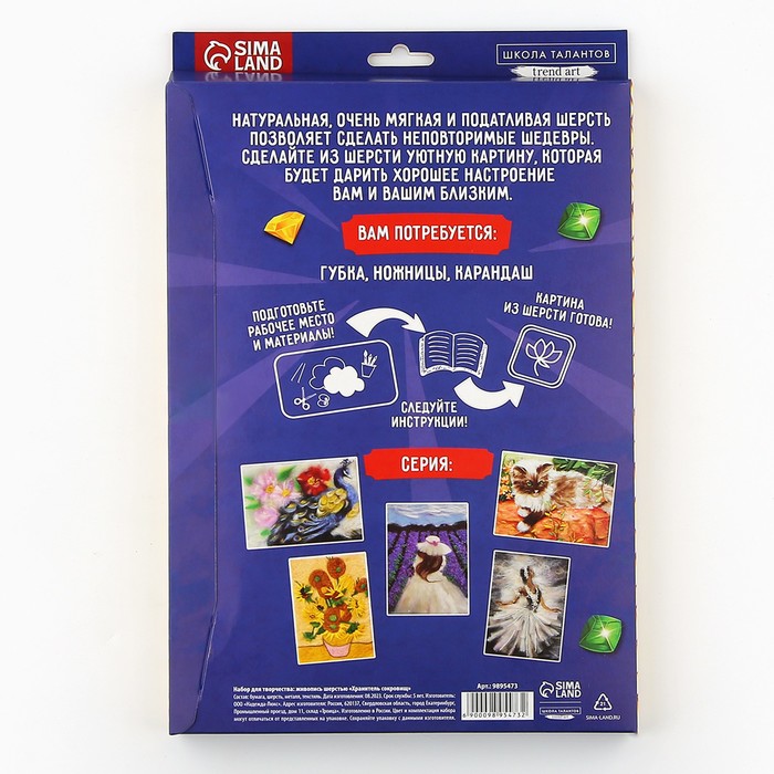 Данный вид творчества основан на валянии. Никогда не слышали о такой технике? Это не проблема: создать мягкое и пушистое панно вам помогут подробные инструкции и видео-мастер-класс, входящие в набор.