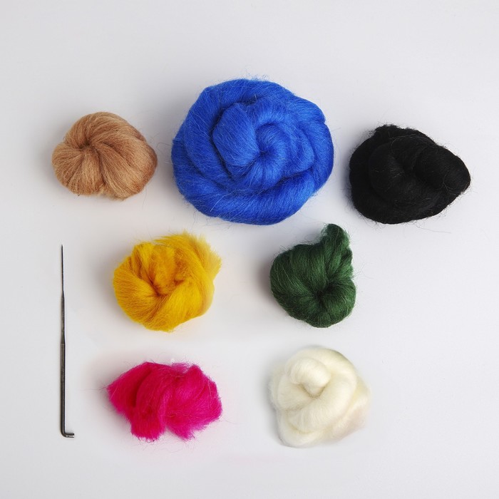 В этом наборе собрано всё самое необходимое для создания своими руками игрушки в технике сухого валяния. Раньше чтобы смастерить что-то подобное приходилось искать шерсть разных цветов в магазине, у бабушки, в маминых коробочках с пряжей, а теперь всё необходимое есть в комплекте для творчества. Теперь каждый, даже начинающий любитель фелтинга, быстро смастерит красивую игрушку.