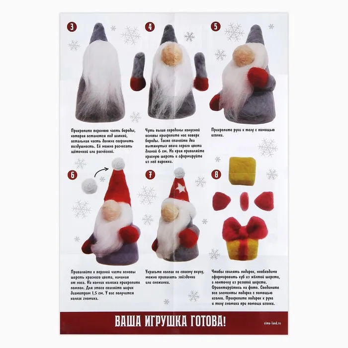 Валяние из шерсти на новый год. Игрушка своими руками «Гномик с подарком», новогодний набор для творчества — Характеристики