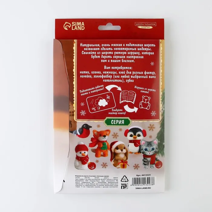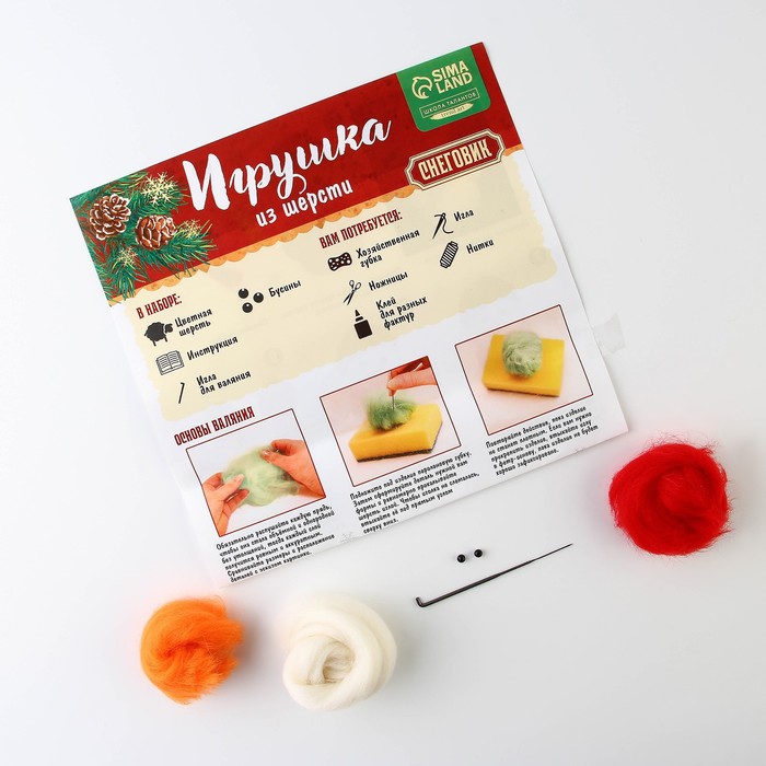 Валяние из шерсти на новый год «Снеговик с ёлочным шаром», новогодний набор для творчества — Характеристики