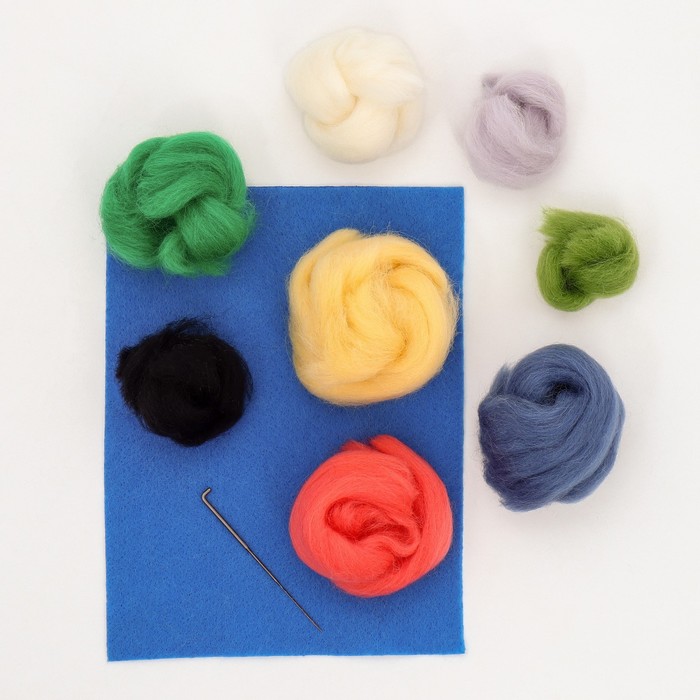 Лоскуты цветной шерсти, специальную иглу и лист фетра, который будет служить холстом для вашей картины.