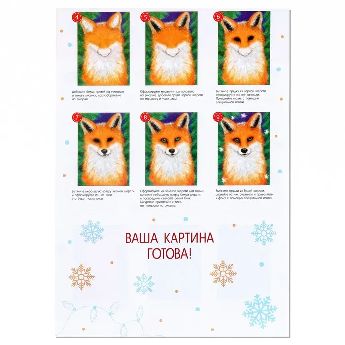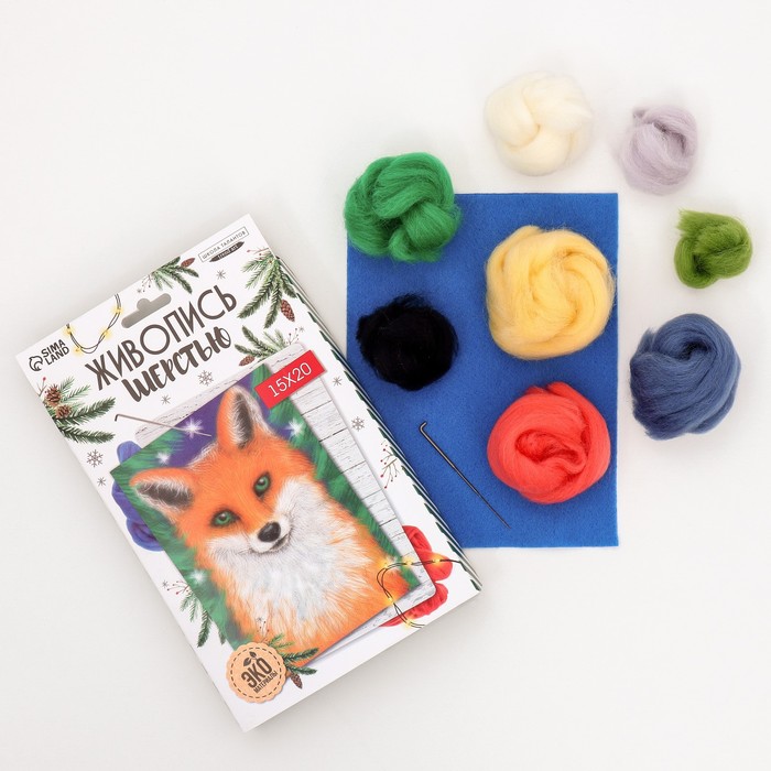 Валяние из шерсти на новый год. Живопись шерстью «Милая лисичка», А5, новогодний набор для творчества — Характеристики