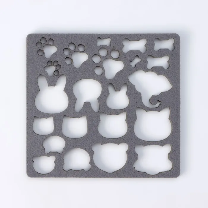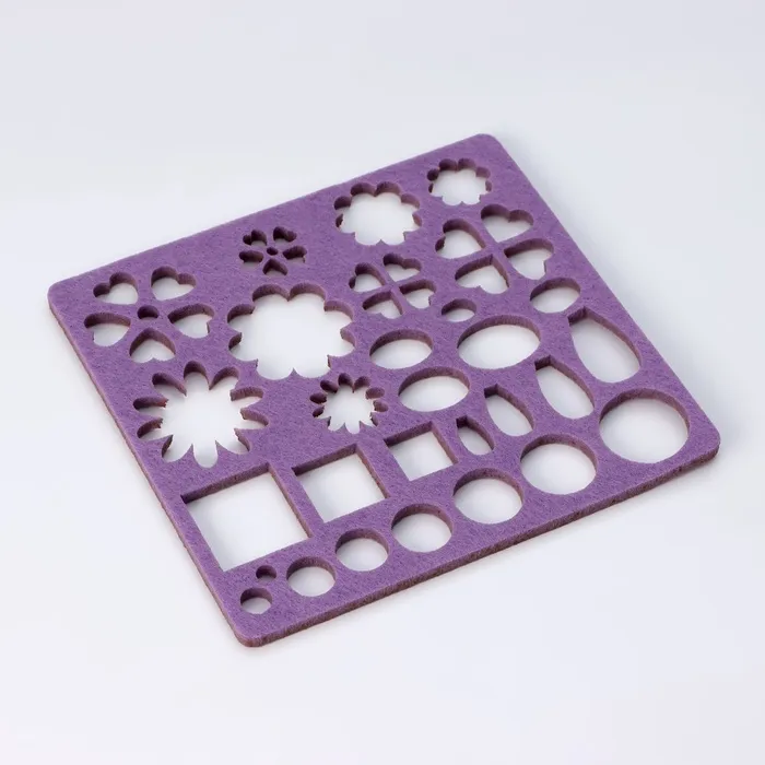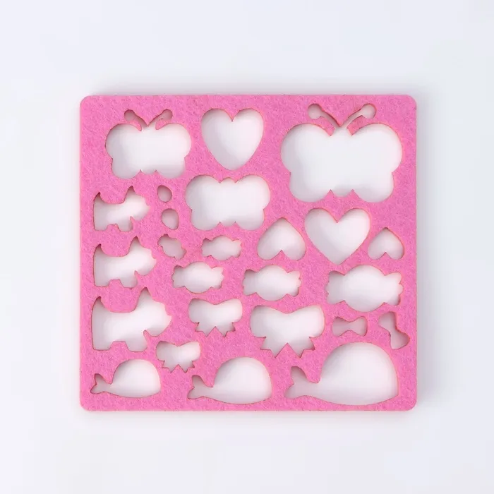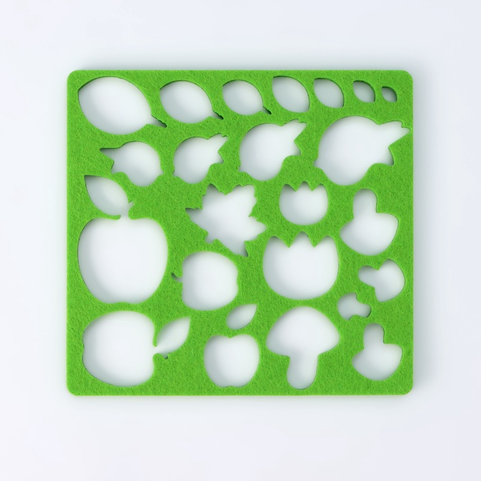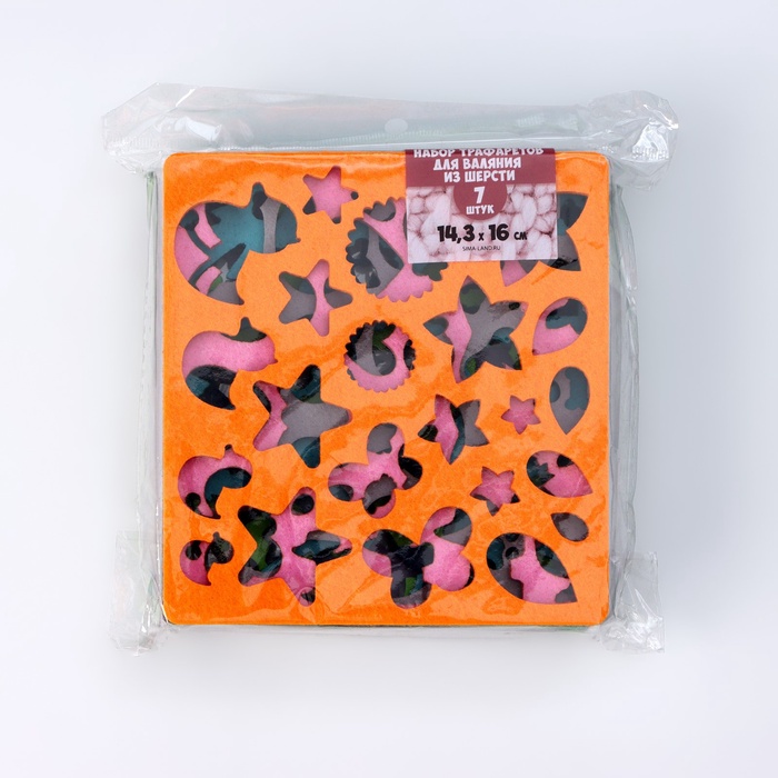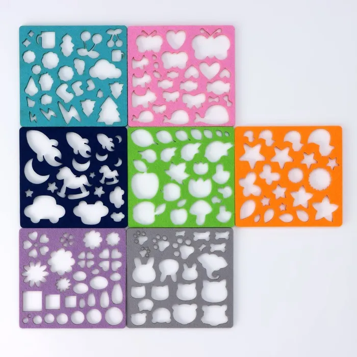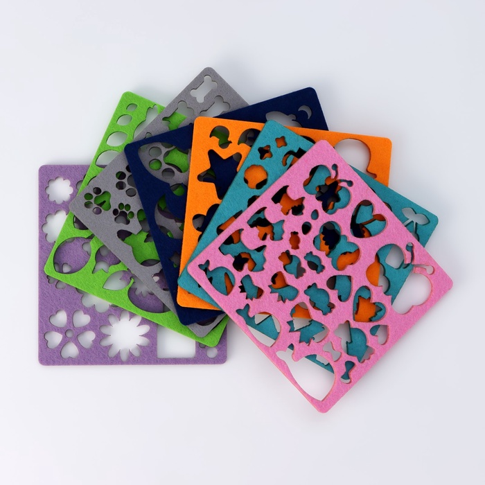 В комплекте для валяния собрано 7 фетровых трафаретов размером 14,3 х 16 см.