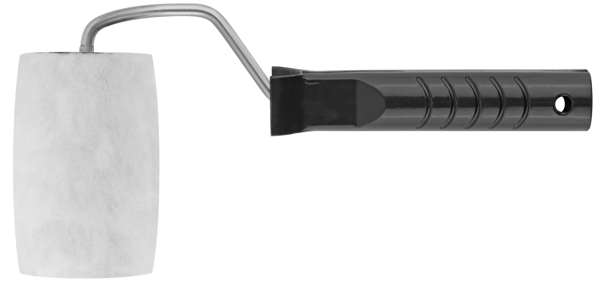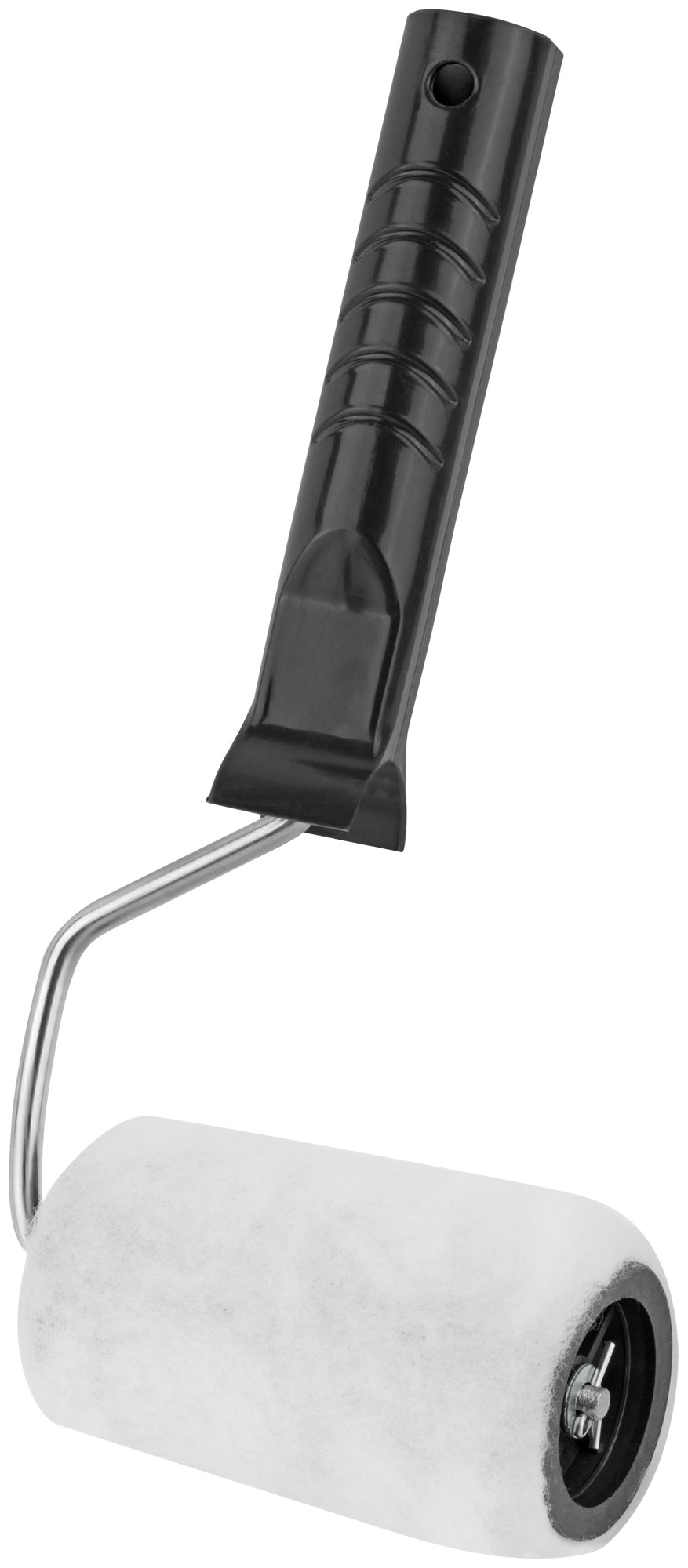 Валик изготовлен из искусственного меха с длиной ворса 12 мм. Бюгель толщиной 6 мм обеспечивает надежность конструкции, а пластиковая шайба-фиксатор предотвращает соскальзывание валика во время работы.