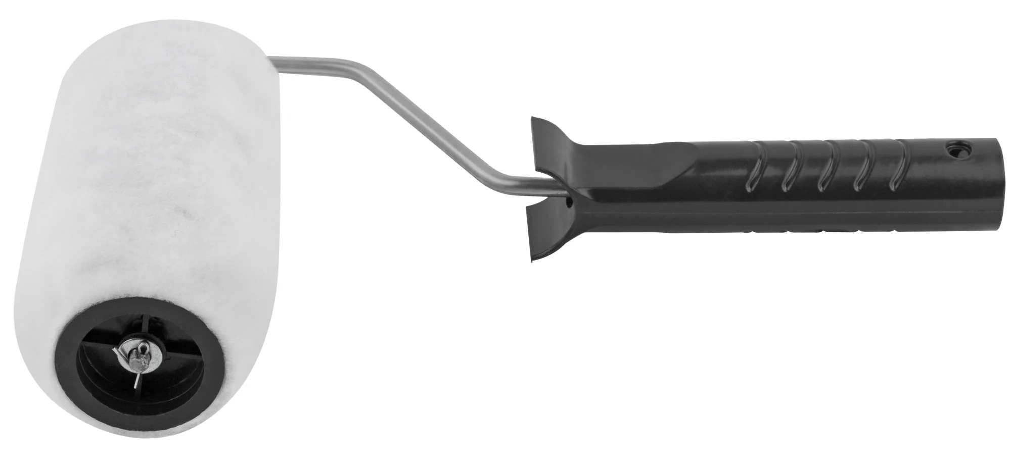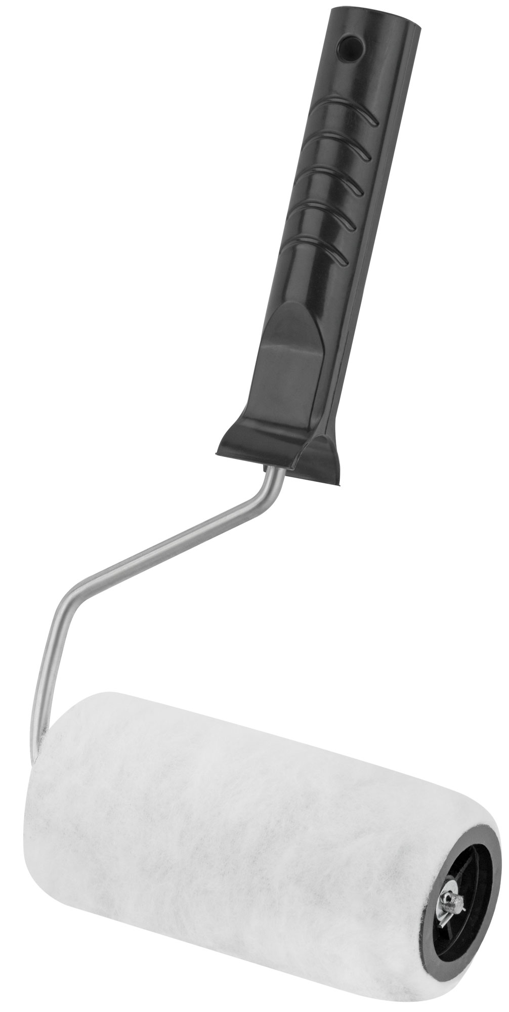 Валик изготовлен из искусственного меха с длиной ворса 12 мм, что обеспечивает отличное удержание и распределение краски. Бюгель толщиной 6 мм и пластиковая шайба-фиксатор гарантируют надежное крепление валика к ручке, обеспечивая комфортное использование.