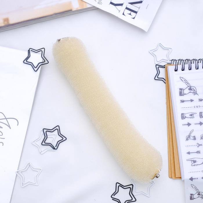 Валик на кнопке для создания пучка, 4.5×17, бежевый — незаменимый помощник для создания любого вида пучка, с этим аксессуаром укладка получится аккуратной и будет выглядеть презентабельно. Подберите «бублик» в тон ваших волос, чтобы он был незаметен, благодаря валику пучок получится объёмным.