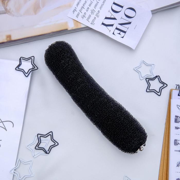 Валик на кнопке для создания пучка, 4.5×17 см, чёрный — незаменимый помощник для создания любого вида пучка, с этим аксессуаром укладка получится аккуратной и будет выглядеть презентабельно. Подберите «бублик» в тон ваших волос, чтобы он был незаметен, благодаря валику пучок получится объёмным.