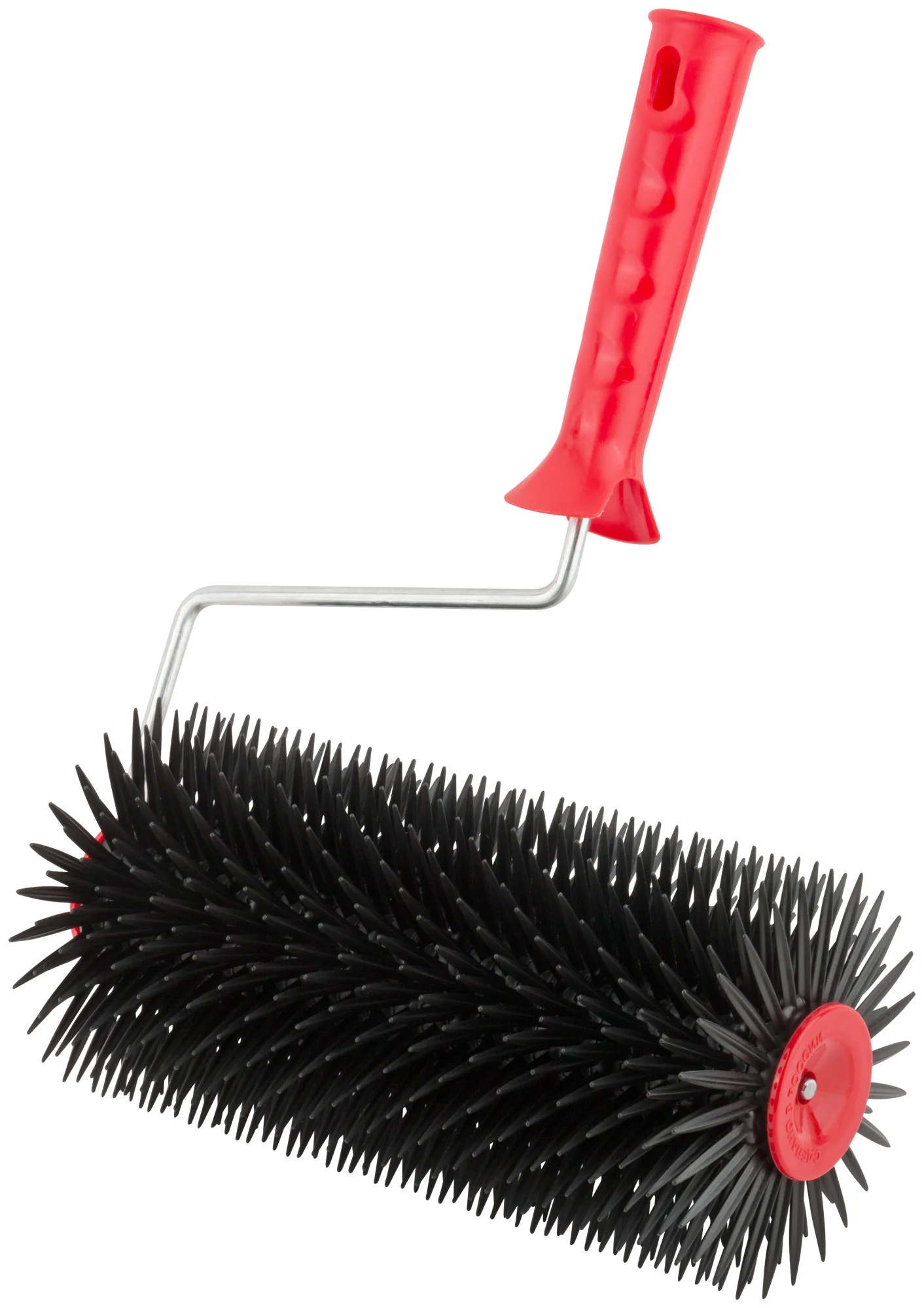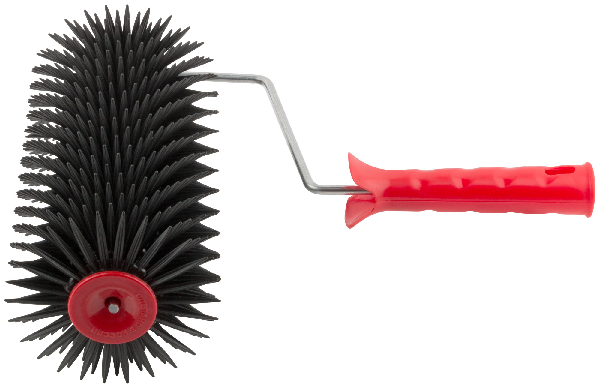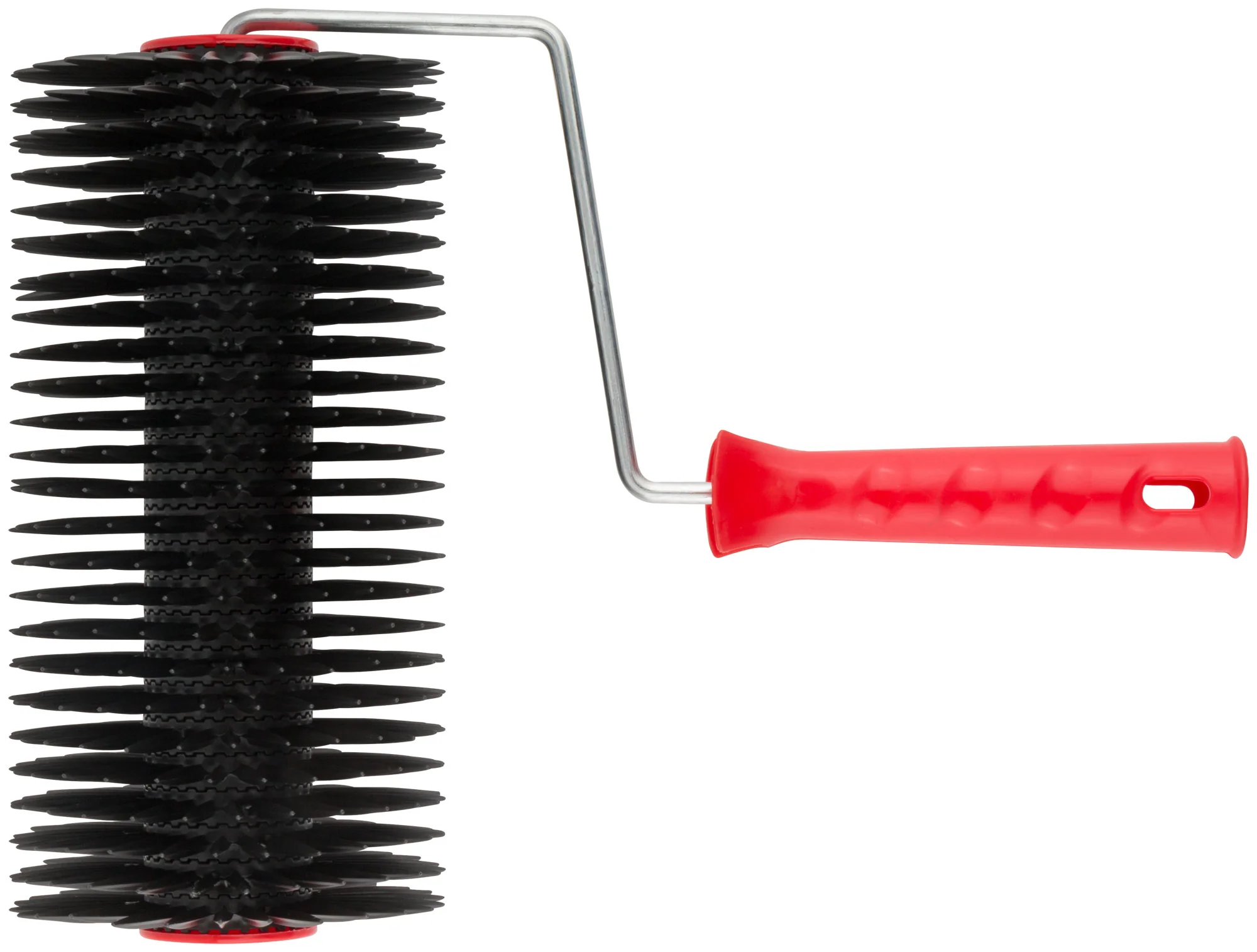 Изготовленный из прочного пластика, валик имеет диаметр 116 мм и высоту иглы 28 мм. Эти параметры оптимальны для качественной работы с наливными полами, обеспечивая равномерное распределение смеси и предотвращая образование пузырей.