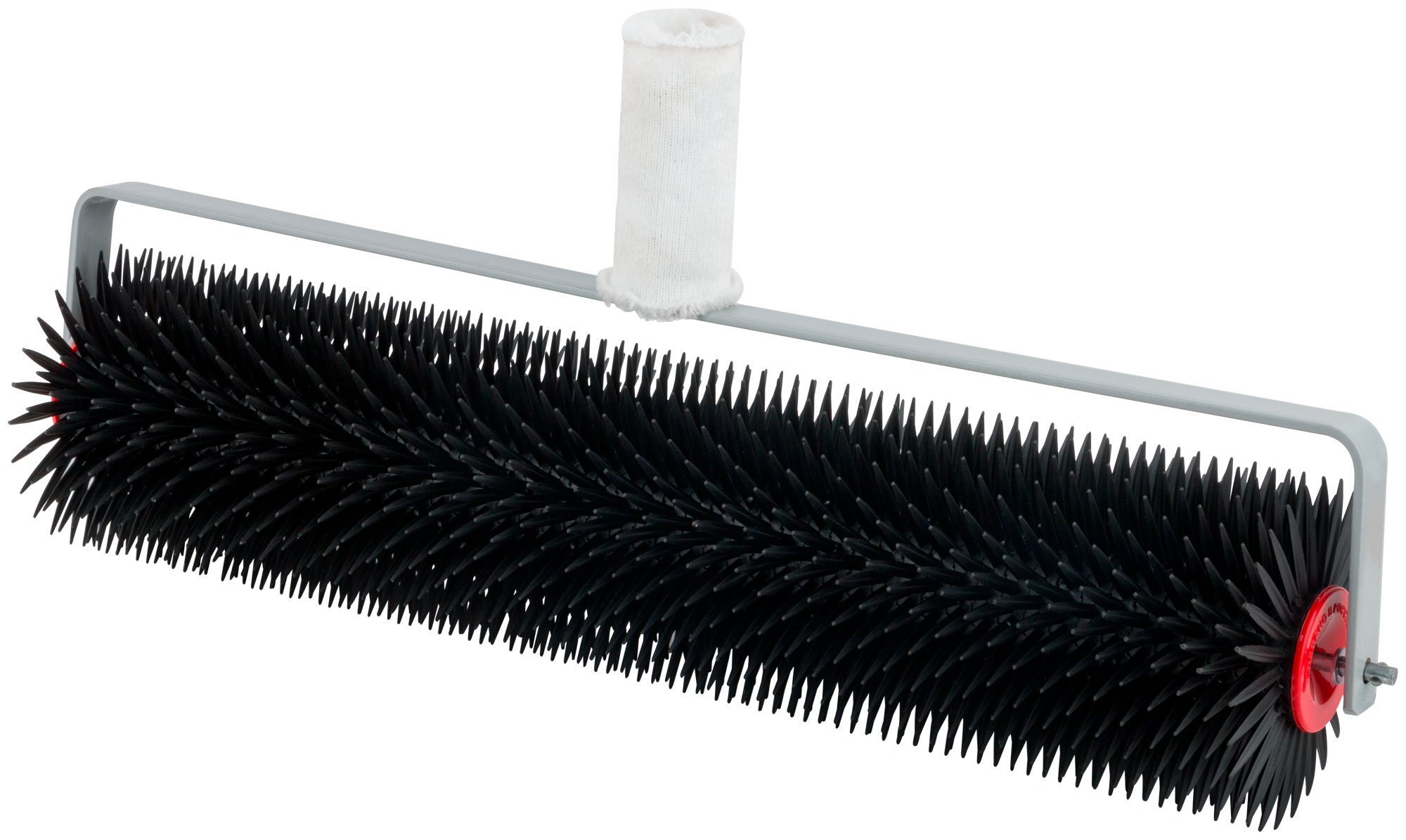 Основные преимущества этого валика — это легкость конструкции и оптимальная длина в 500 мм, что снижает утомляемость при длительных работах. Пластиковые иглы не повреждают поверхность и не оставляют следов на заливке.