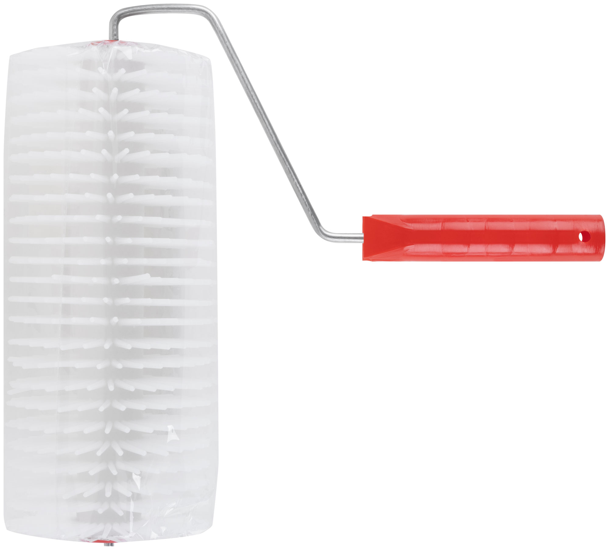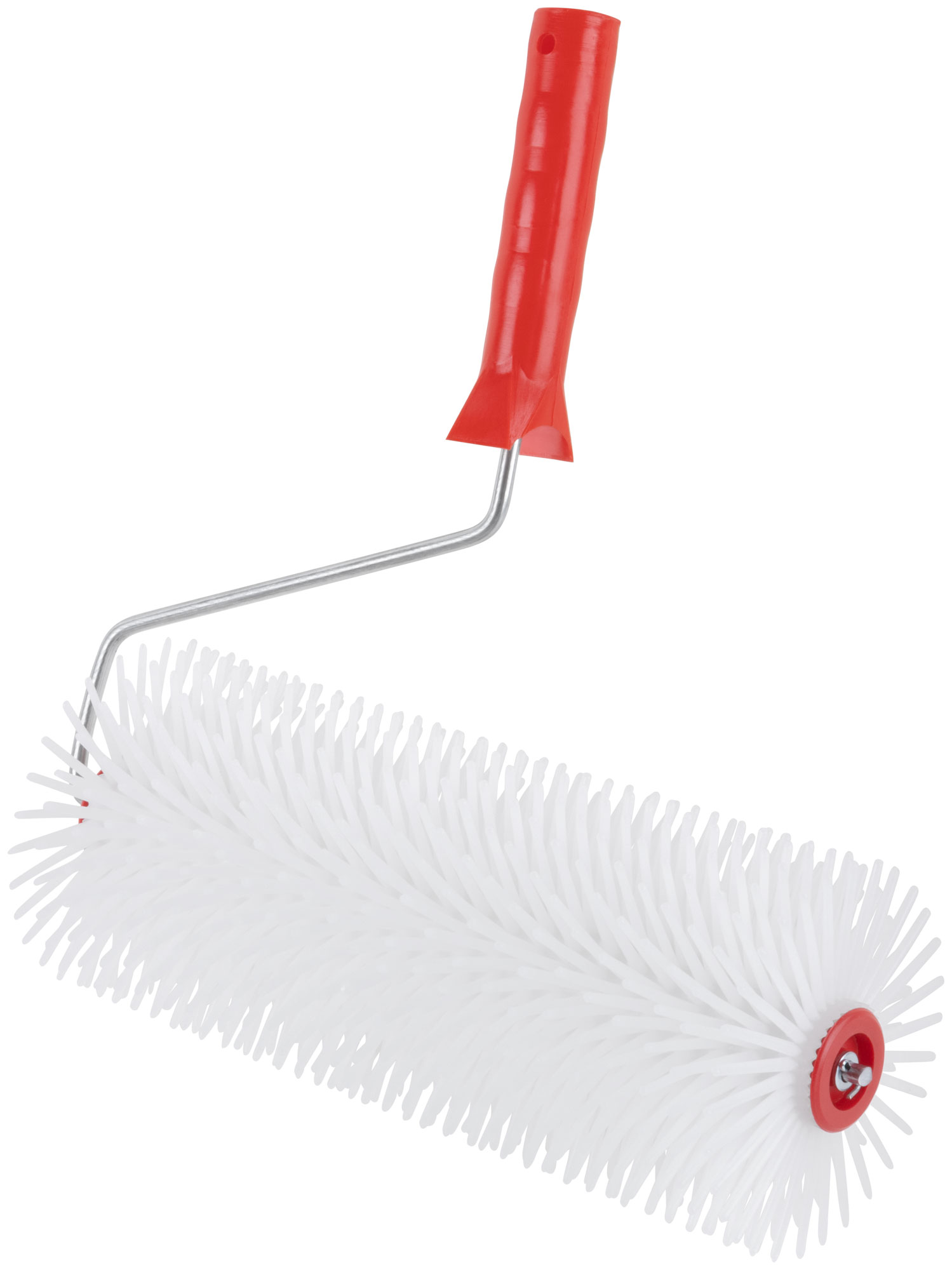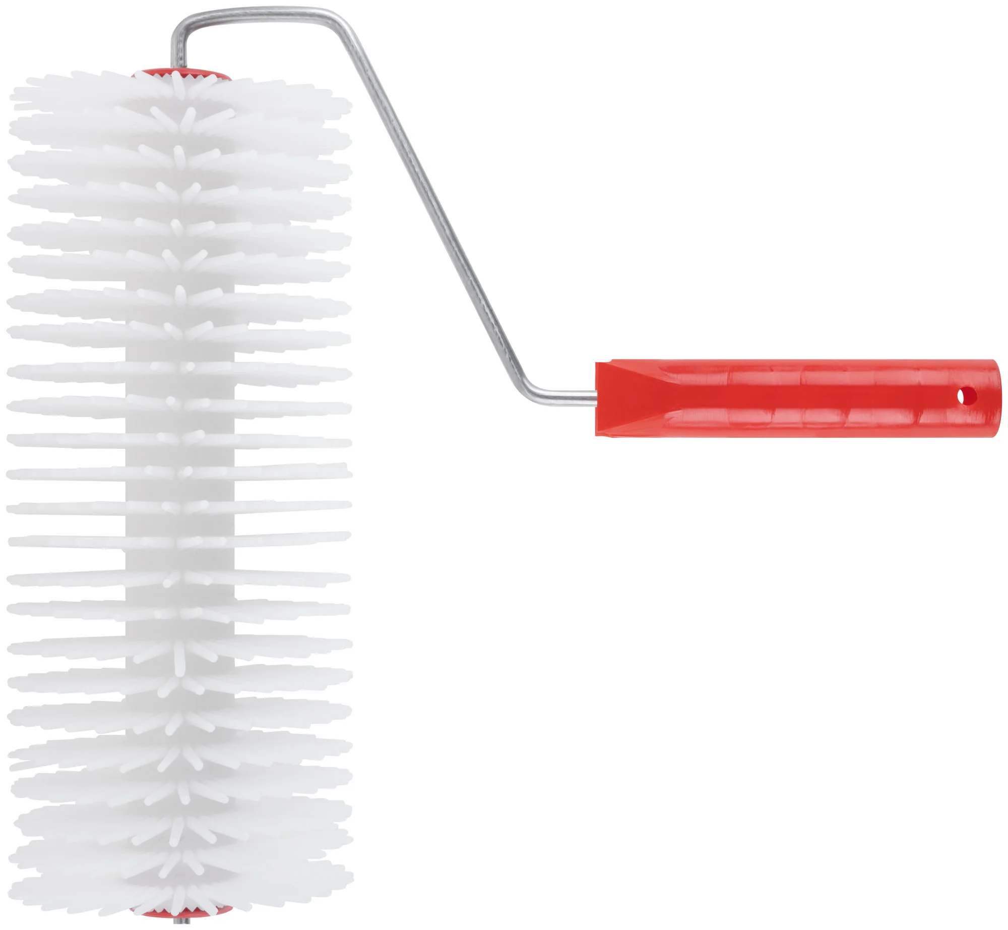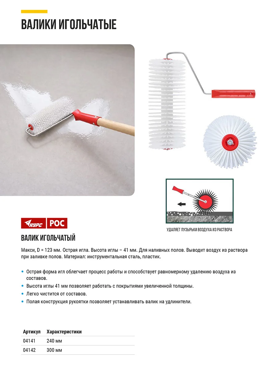 Валик изготовлен из высококачественной инструментальной стали и пластика, что обеспечивает долговечность и надежность в использовании. Диаметр валика составляет 123 мм, а высота иглы — 41 мм, что позволяет эффективно обрабатывать поверхность любого типа.