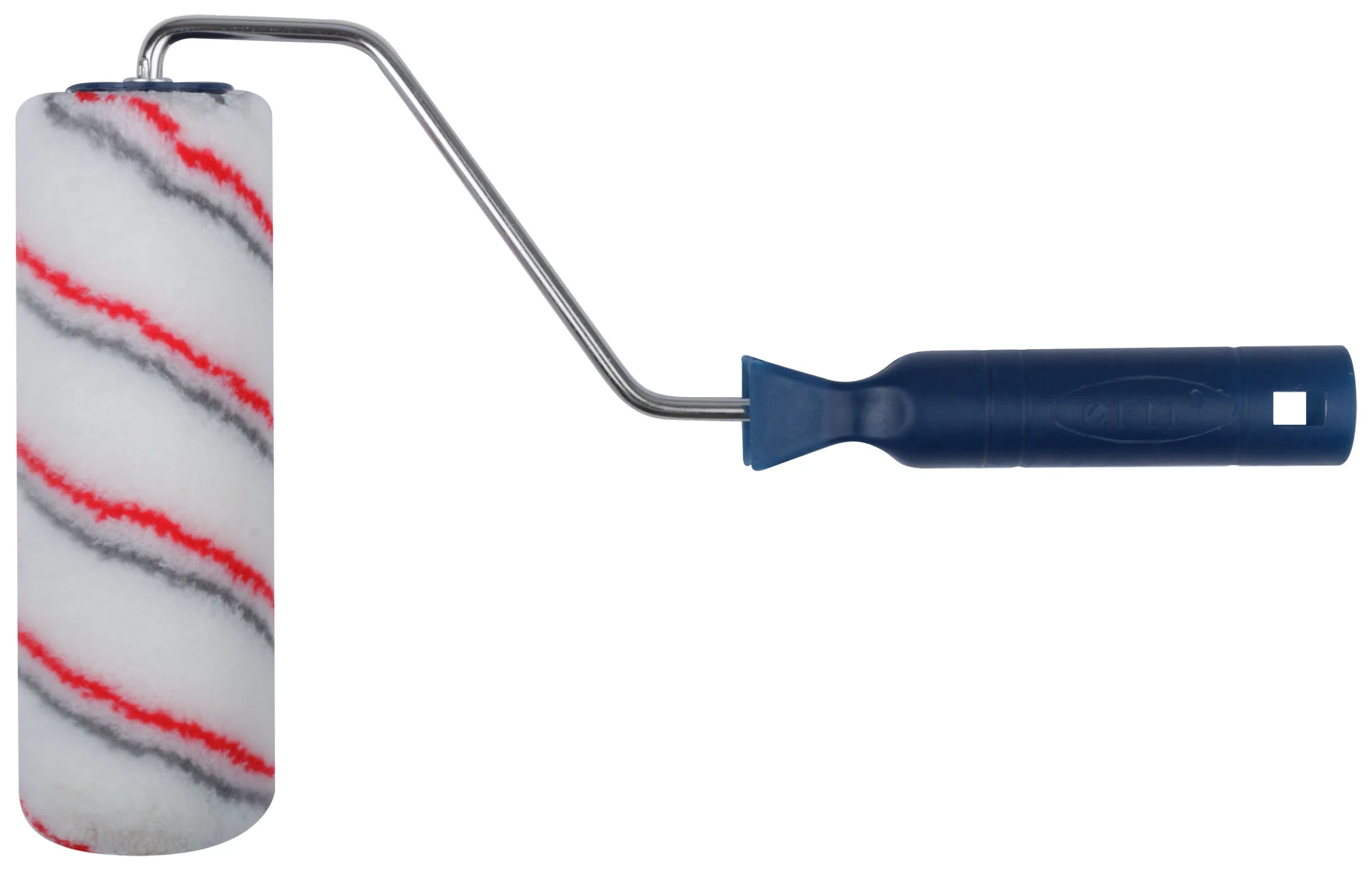 Каркасная система валика обеспечивает легкость и удобство использования. Валик оснащен полиакриловым покрытием белого цвета со спиральными полосами, что улучшает равномерность нанесения краски и предотвращает её разбрызгивание. Диаметр валика составляет 40/64 мм, а бюгель — 6 мм, что делает его универсальным для различных работ.