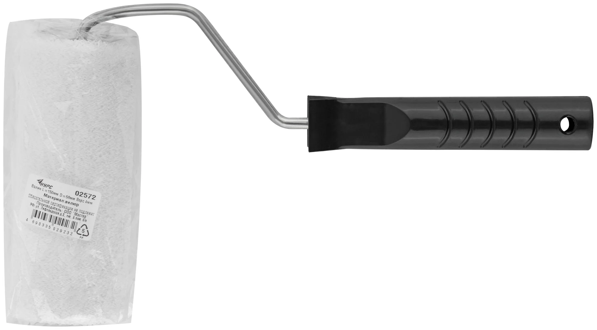 Валик велюровый с ручкой 150 мм для гладких поверхностей