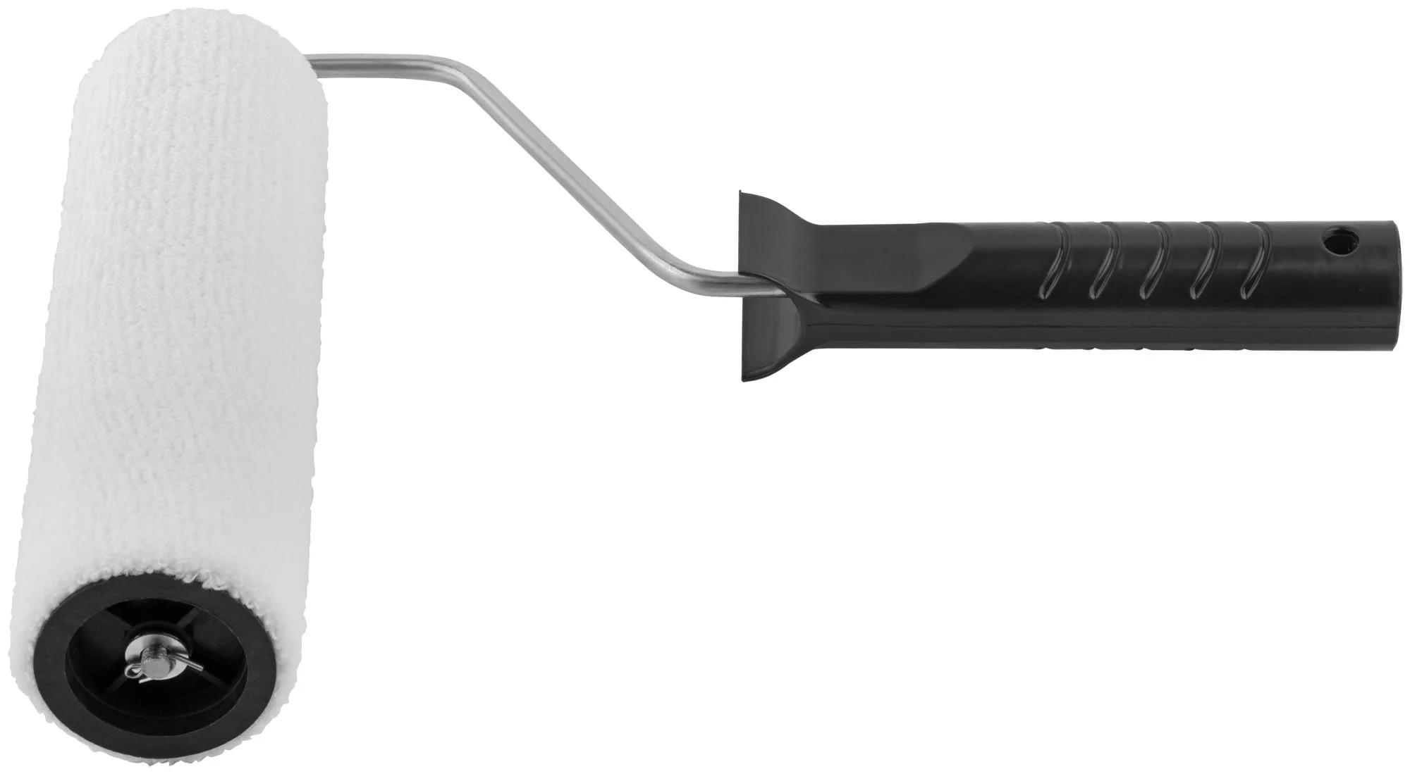 Валик оснащен бюгелем диаметром 6 мм и пластиковой шайбой-фиксатором, что обеспечивает устойчивость и надежность конструкции. Ворс длиной 4 мм позволяет работать с разными видами лакокрасочных материалов, за исключением нитроосновы.