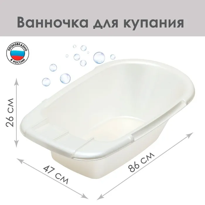 Разработана и предназначена для купания малыша с первых дней жизни. Размеры ванночки позволяют легко расположить в ней вставку для купания новорожденных, а детки постарше всегда смогут взять с собой в ванночку игрушки. Ванночка оснащена отделениями для туалетных принадлежностей и имеет удобную форму, что обеспечивает простоту и удобство купания ребенка.Анатомический профиль детской ванночки даёт возможность малышам купаться в двух оптимальных для возраста положениях – лежа и сидя.Ванночка изготовлена из высококачественного, легкого и прочного пластика.