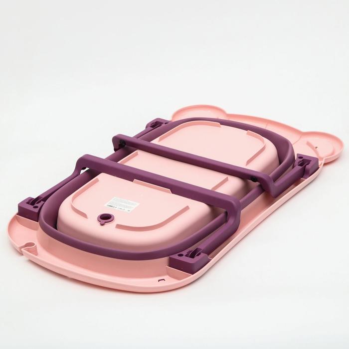 Ванночка детская складная со сливом, «Мишка», 83 см., цвет розовый
