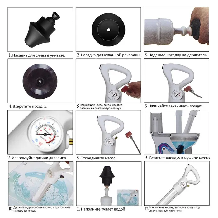 Вантуз пневматический ZEIN, 3 насадки, датчик давления, ручной насос — Характеристики