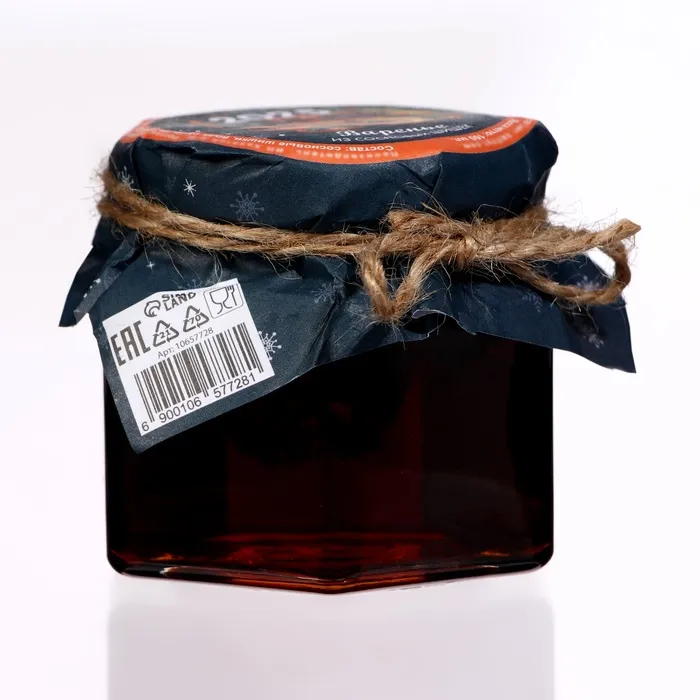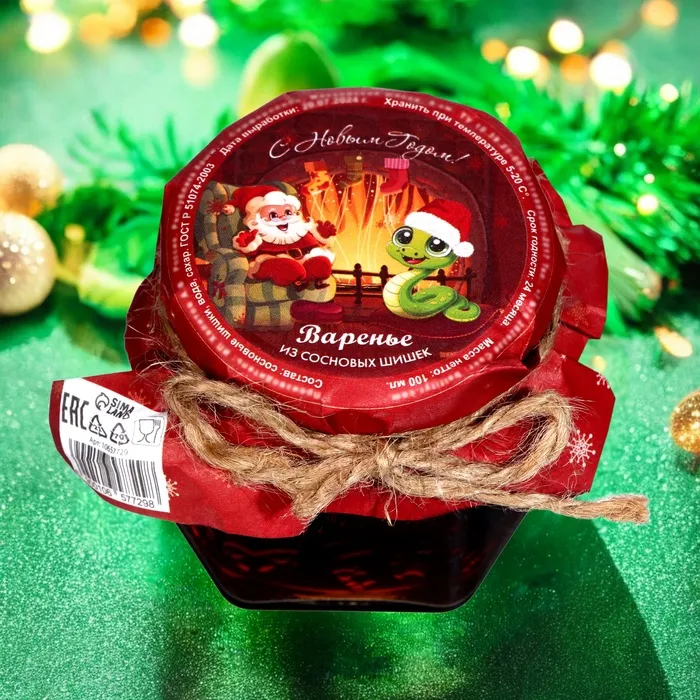 Новогоднее варенье "Змея оранжевая с 2025 годом!" из сосновой шишки — это уникальное угощение, которое станет настоящим украшением вашего праздничного стола. Варенье изготовлено из молодых сосновых шишек, которые сохраняют все свои полезные свойства и насыщенный хвойный аромат. Сочетание сладости и легкой хвойной терпкости придаёт варенью необычный вкус, который удивит и порадует ваших гостей. Этот продукт не только вкусен, но и полезен для здоровья, помогая поддерживать иммунитет и согревая в зимние вечера.