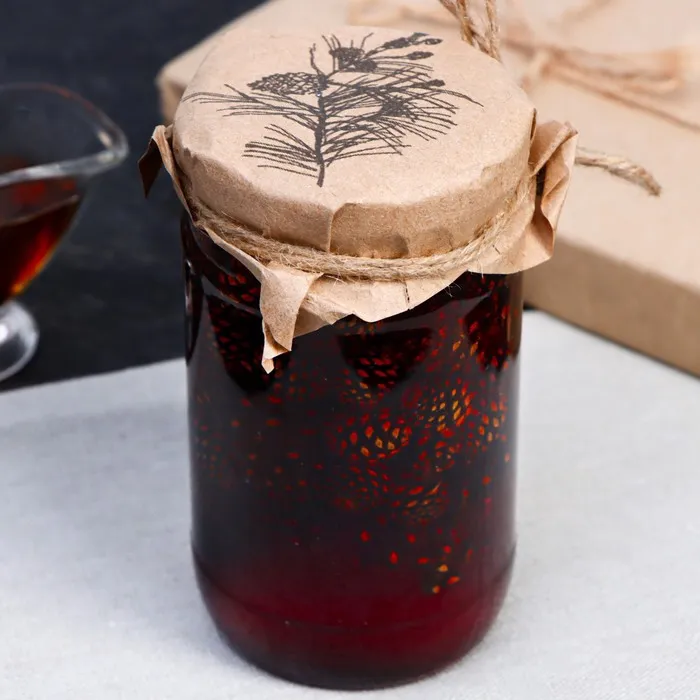 Этот продукт можно описать одним предложением: варенье со вкусом тайги. Хвойный аромат уводит в глубь сибирских лесов и погружает в лесную смолистую сказку. Живичным, сосновым мёдом издревле сибирские хозяйки называют варенье из молодых шишек таёжной красавицы. Давно известно это лакомство как средство от многих болезней. Так, молодые сосновые шишки и отвары из них хорошо разжижают кровь, их рекомендуют употреблять для предупреждения инсульта. Компоненты, содержащиеся в этом природном лекарстве, придают силы и способствуют повышению иммунитета. Вкус у соснового мёда глубокий: фруктово-ягодный с хвойными и клубничными оттенками. Шишка мягкая и полностью съедобная.