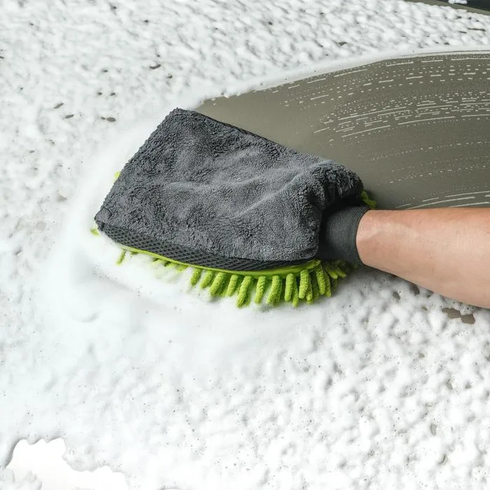 Варежка из микрофибры очень многофункциональная вещь, поскольку подходит как для мойки кузова, так и полировки пластика салона автомобиля. Такая перчатка из микрофибры сделает процесс мойки машины более комфортным и тщательным. Микрофибра впитывает намного больше влаги, чем обычная автомобильная тряпка и быстрее сохнет, а после стирки не теряет своих свойств. Рукавица из микрофибры не оставляет следов и разводов, не царапает лакокрасочное покрытие автомобиля. Такая варежка прекрасно подойдет для самостоятельного ухода за автомобилем.