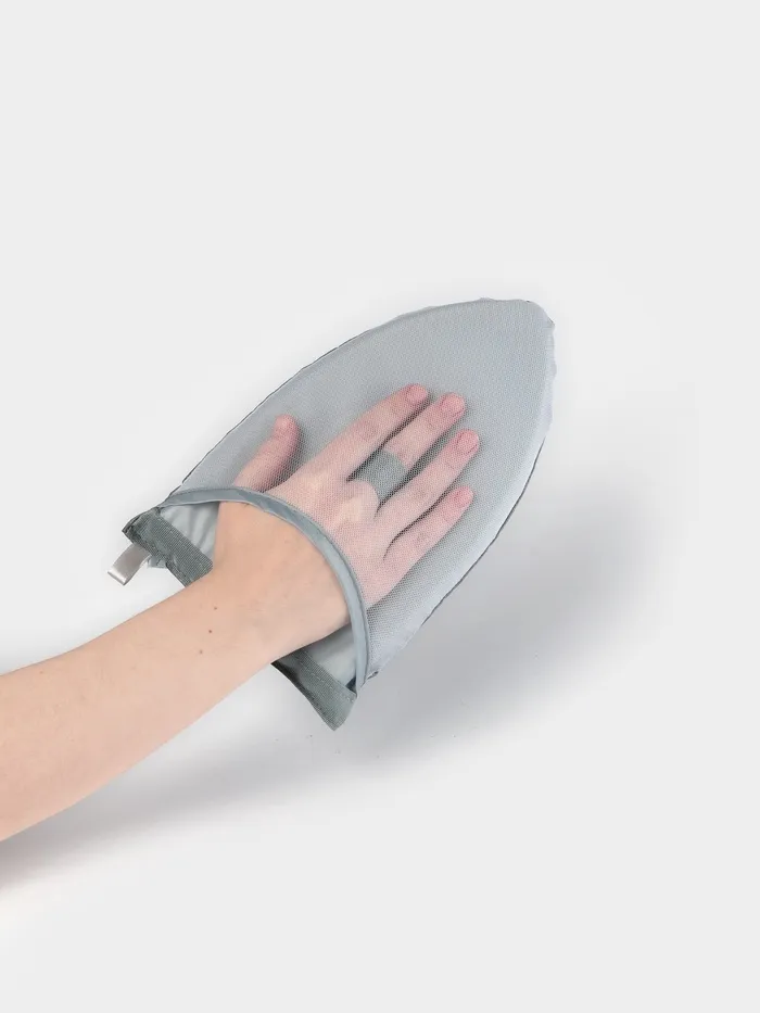 Наденьте варежку на руку, включите отпариватель и аккуратно проведите по ткани. Она защитит вашу руку от горячего пара, одновременно разглаживая складки. Идеально подходит для быстрого освежения одежды перед выходом или ухода за вещами в дороге.