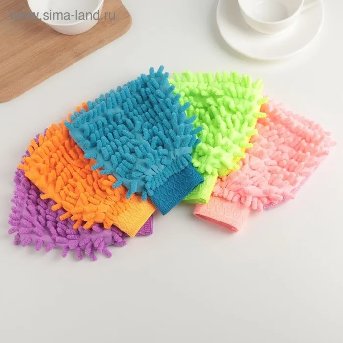 Варежка для уборки Доляна «Букли», микрофибра односторонняя, 15×20 см, МИКС — Характеристики