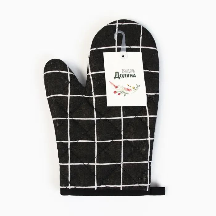 Варежка Доляна «Клетка», чёрная, 26×16 см, 100% п/э — Характеристики