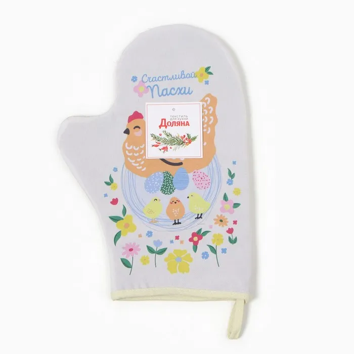Варежка-прихватка Доляна "Курочки" 20х28 см, 35% хл, 65% пэ, ватин 250 г/м2 — Характеристики