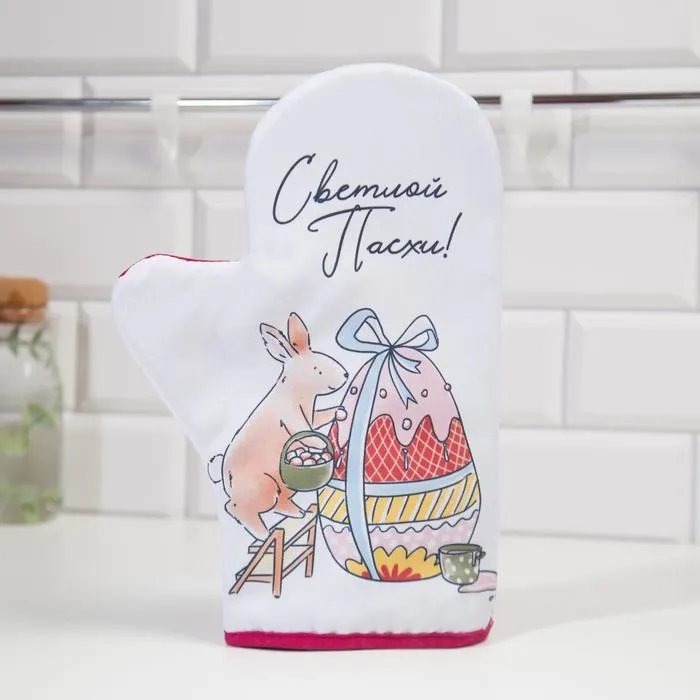 Варежка-прихватка Доляна "Пасха" 20х28 см, 35% хлопок, 65% пэ, ватин 250 г/м2 — Характеристики