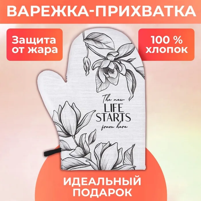 Варежка-прихватка Доляна Plant leaves 20х27 см, 100% хлопок, 250 г/м2 — Характеристики