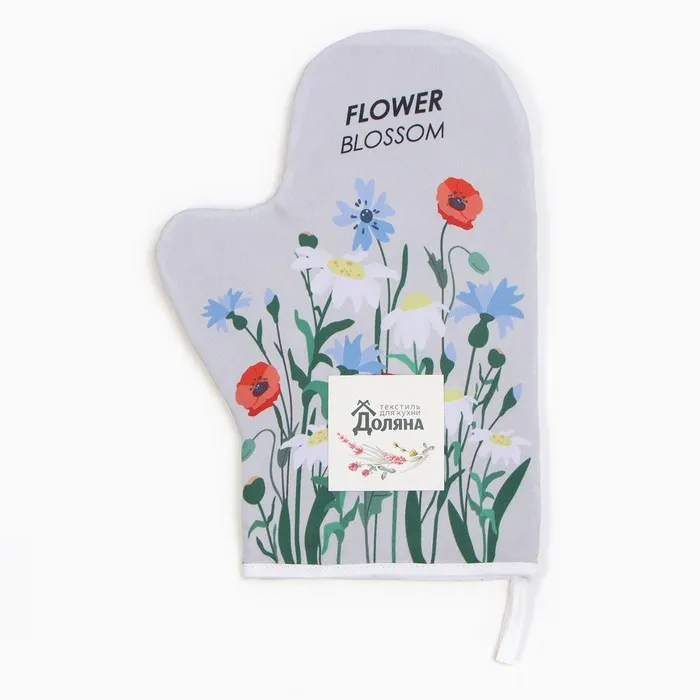 Варежка-прихватка Доляна "Полевые цветы" 20х28 см, 35% хл, 65% пэ, ватин 250 г/м2 — Характеристики