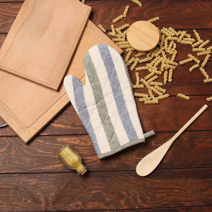 Варежка-прихватка Доляна «Полоса», син/зел, 28×17 см, 50% п/э, 50% хлопок — Характеристики