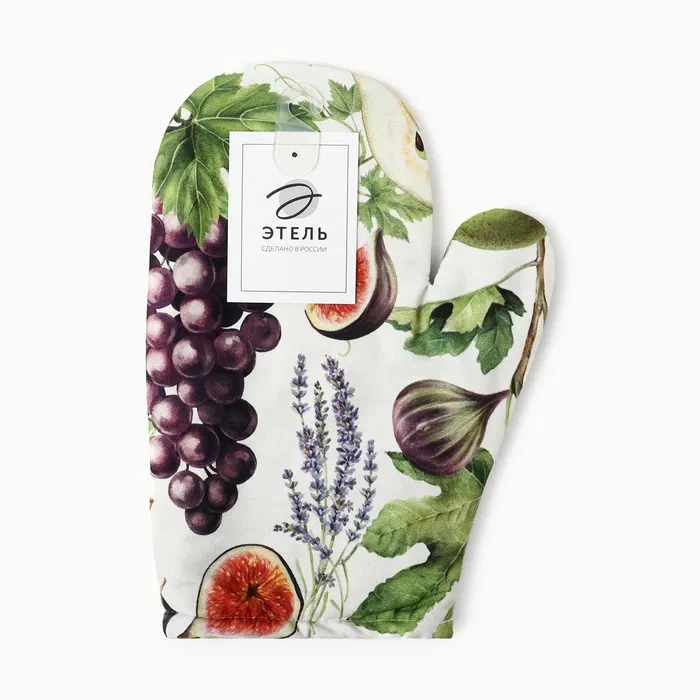 Варежка-прихватка "Этель" Фруктовый сад 20х27см,100% хлопок, ватин 250г/м2 (двухсторонняя) — Характеристики