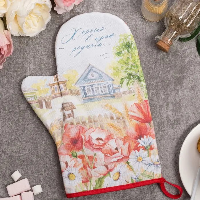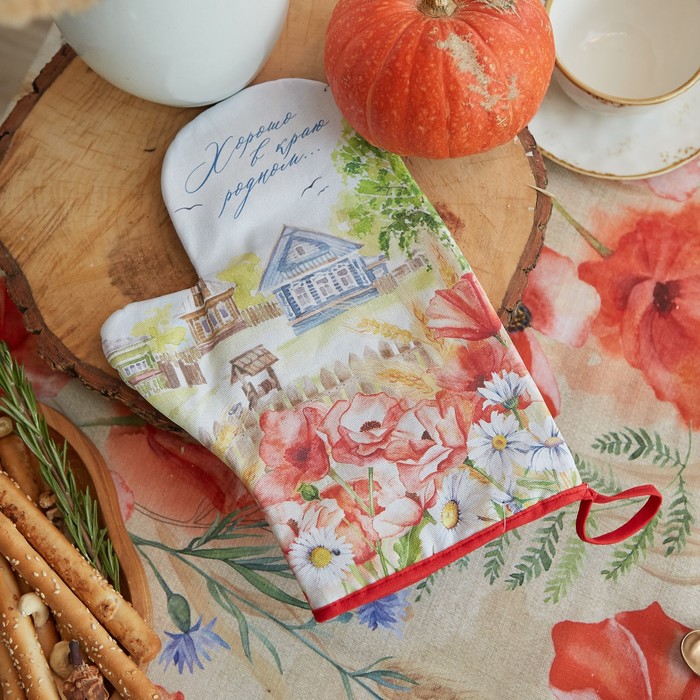 Варежка-прихватка «Этель. В краю родном», 20×28 см, 100% хлопок, саржа, ватин 250 г/м² — Характеристики