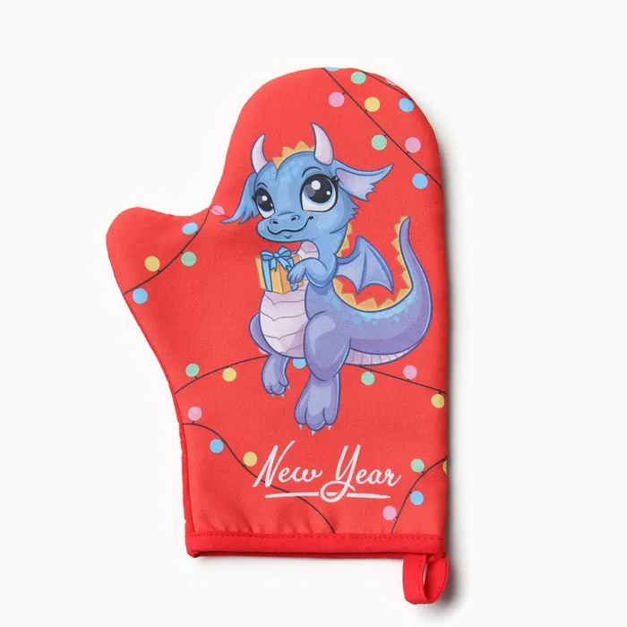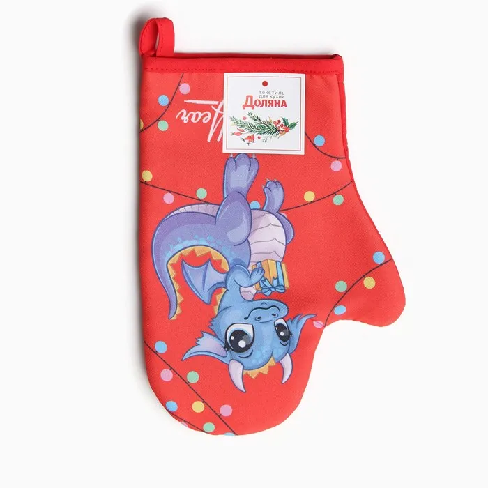 Варежка-прихватка новогодняя Доляна "Дракон с подарком" 20х28 см, 35% хл, 65% пэ, ватин 250 г/м2 — Характеристики
