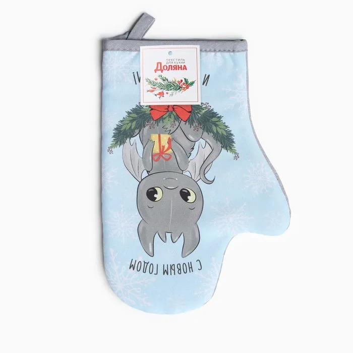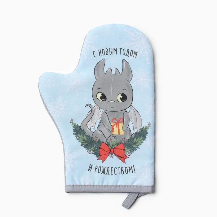 Варежка-прихватка новогодняя Доляна "Радостный дракон" 20х28 см, 35% хл, 65% пэ, ватин 250 г/м2 — Характеристики